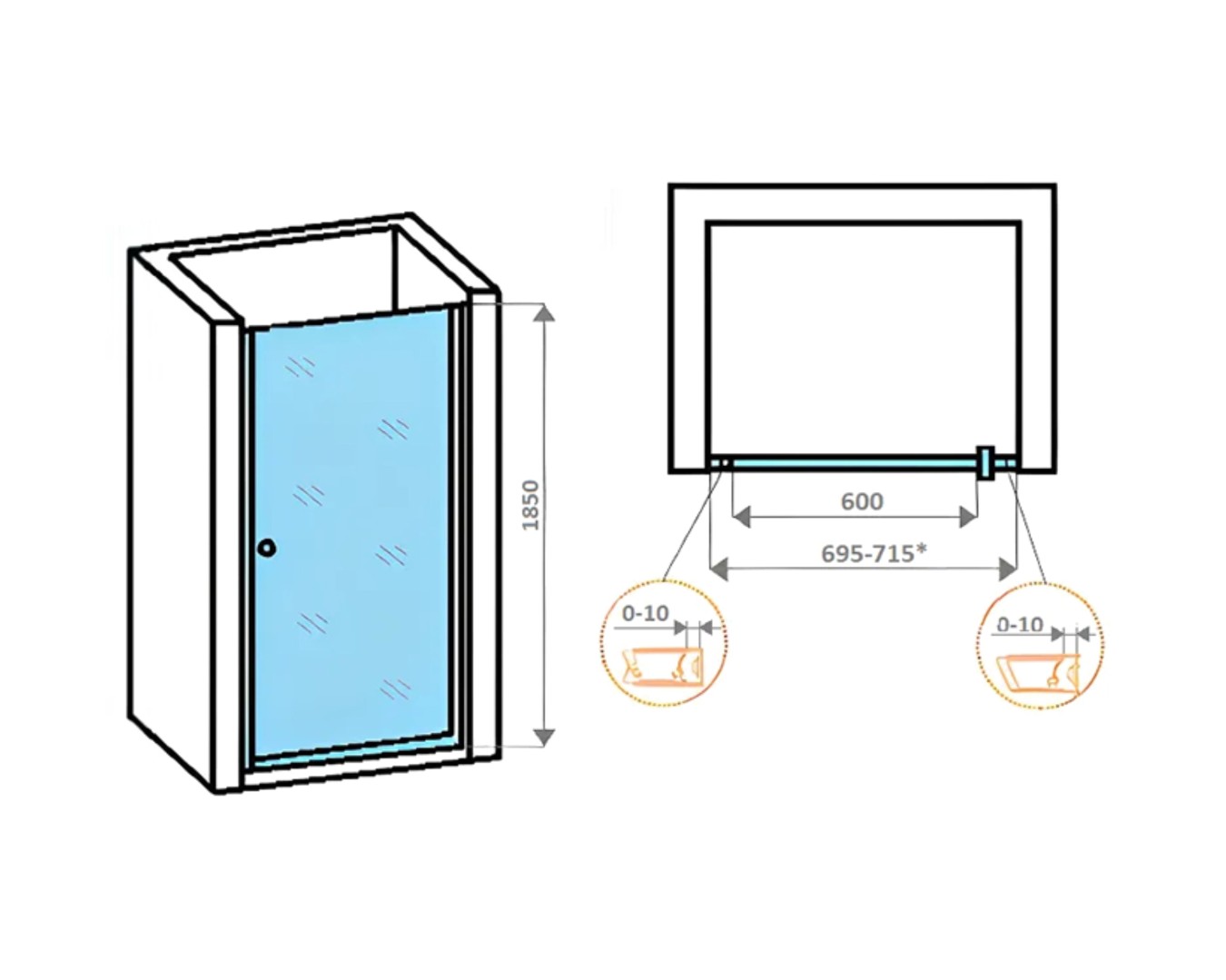 Полированный хромированный профиль из алюминия не деформируется при высокой влажности и смене температуры. Ширину можно регулировать за счет увеличения алюминиевого профиля в пределах 69,5–71,5 см.