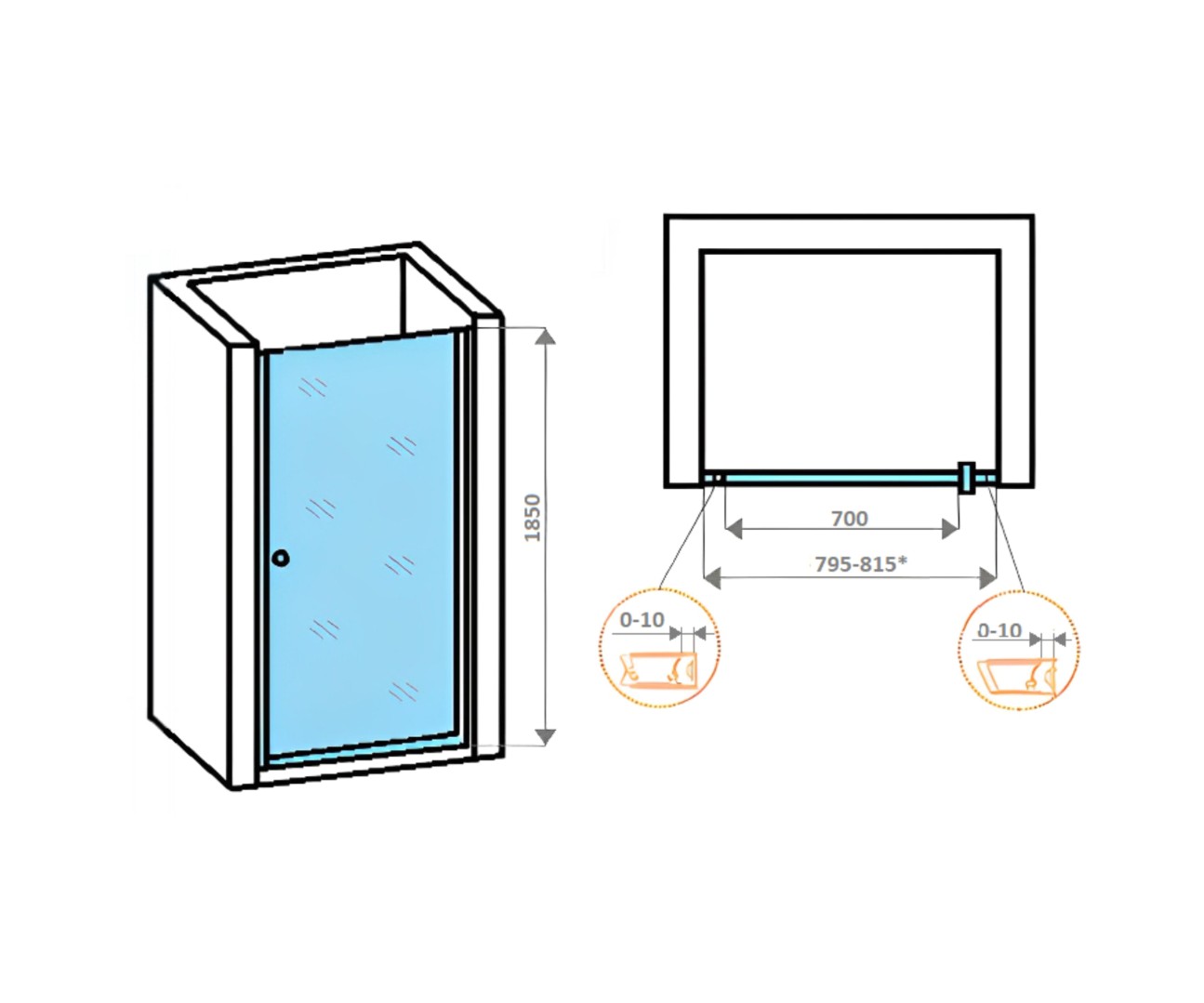 Полированный хромированный профиль из алюминия не деформируется при высокой влажности и смене температуры. Ширину можно регулировать за счет увеличения алюминиевого профиля в пределах 79,5–81,5 см.