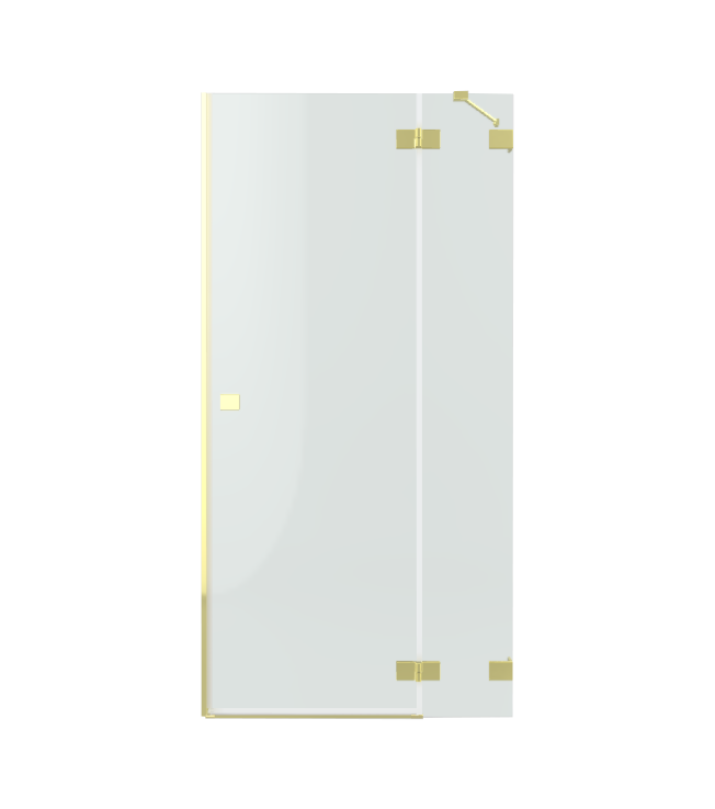Essenza Pro — коллекция кабин разных форм, дверей и шторок, в которых стационанрое стекло закреплено к стене с помощью кронштейна, а не профиля. Допустимы два варианта монтажа: с уплотнительным профилем, или без него. Створка двери подвешена на латунных петлях и открывается только наружу.