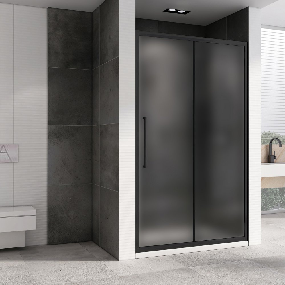 Душевая дверь Abber Schwarzer Diamant AG30120BMH 120x195 стёкла матовые, профиль чёрный.