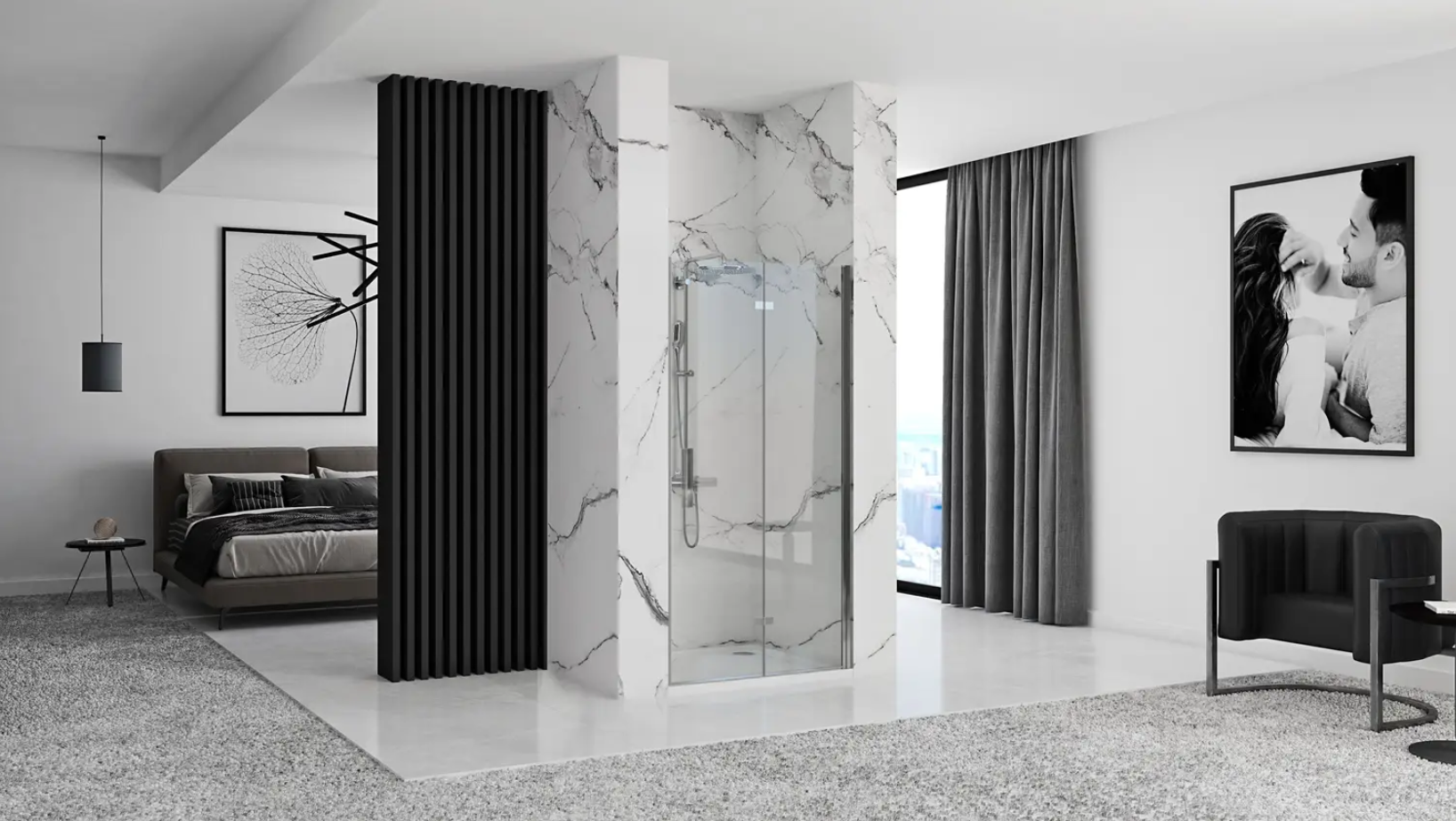 Модель Molier идеально подходит не только для современных ванных комнат, основанных на минимализме, но и для классических интерьеров, выполненных со вкусом. Черный цвет наносится в процессе производства, а затем дважды закаляется вместе с листом при 600-800°C. Это гарантирует 100% износостойкость и устойчивость к царапинам и механическим повреждениям. Это единственный метод, обеспечивающий высочайшее качество и долговечность. Дверь приспособлена для установки на полу с линейным сливом и на душевом поддоне.