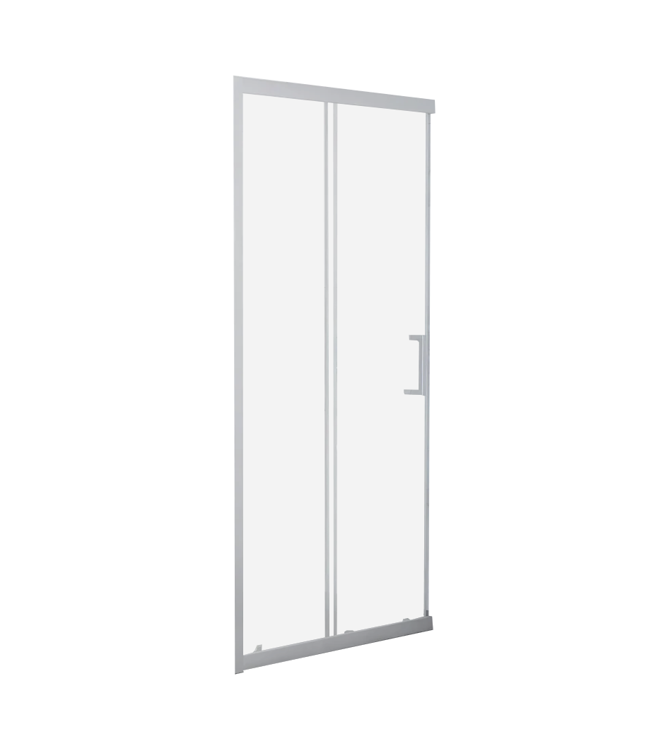Душевая дверь состоит из 2-х секций, одно неподвижное стекло и одна раздвижная секция. Установка открытия двери как с левой, так и с правой стороны.