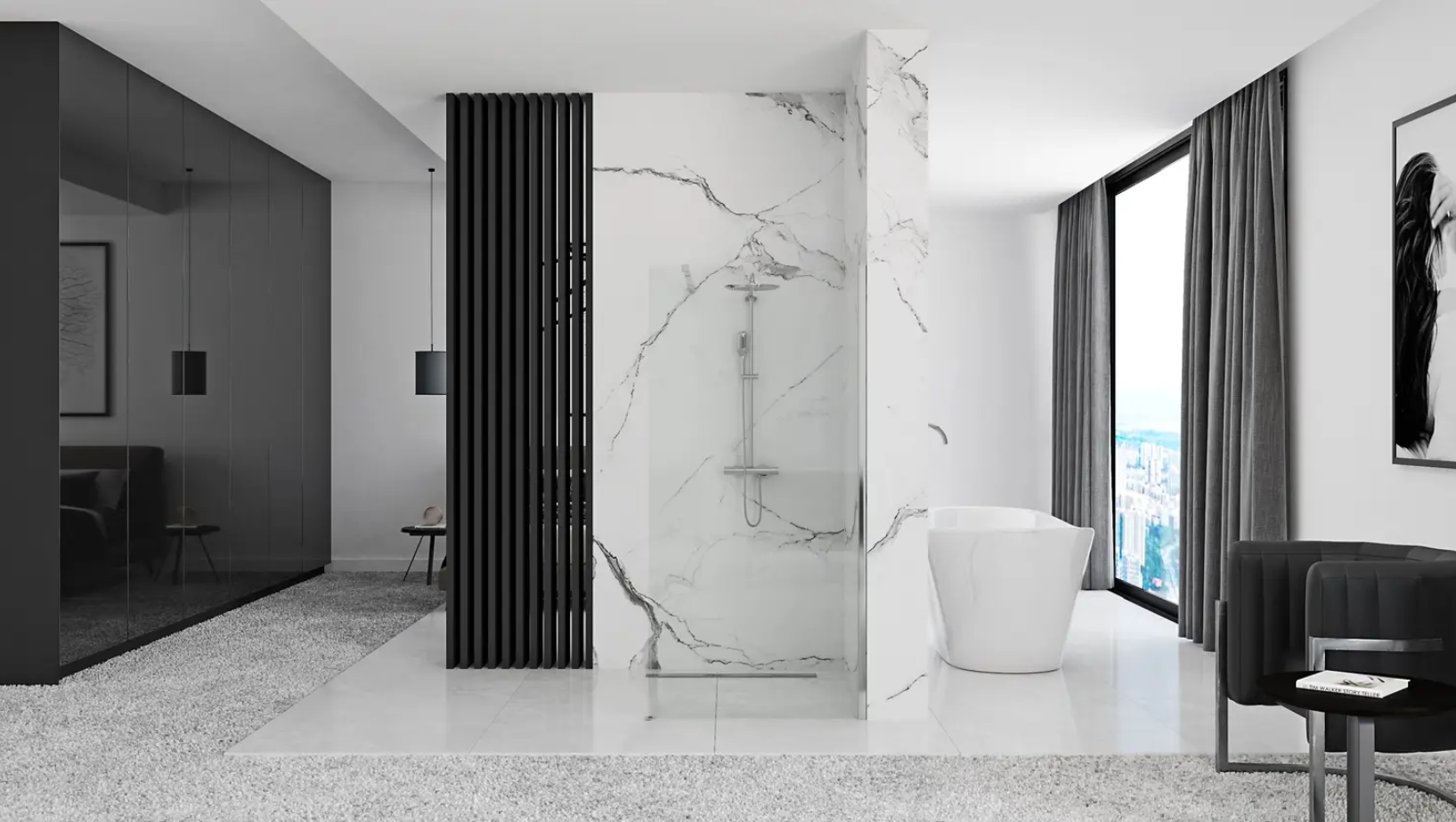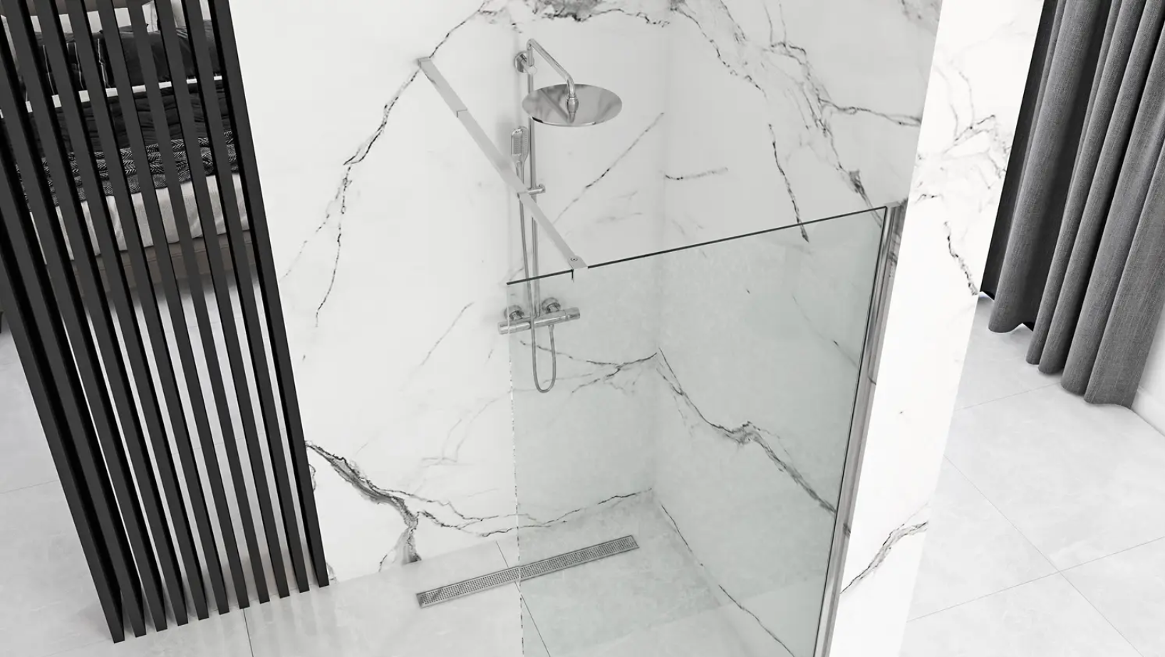 Представляем вам красивую и чрезвычайно функциональную и современную перегородку для душа. Это продукт, который идеально заполнит пространство вашей ванной комнаты, сохранив при этом безупречный внешний вид и эстетику интерьера. Стенка приспособлена для установки на душевой поддон или с линейным сливом. Изготовлена из высококачественного закалённого стекла.