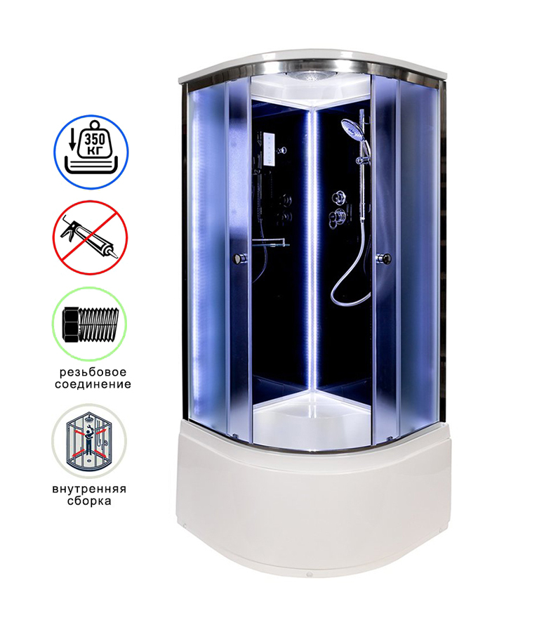 Душевая кабина AvaCan B10SLEDBLACK AVA N 100x100 с LED-подсветкой