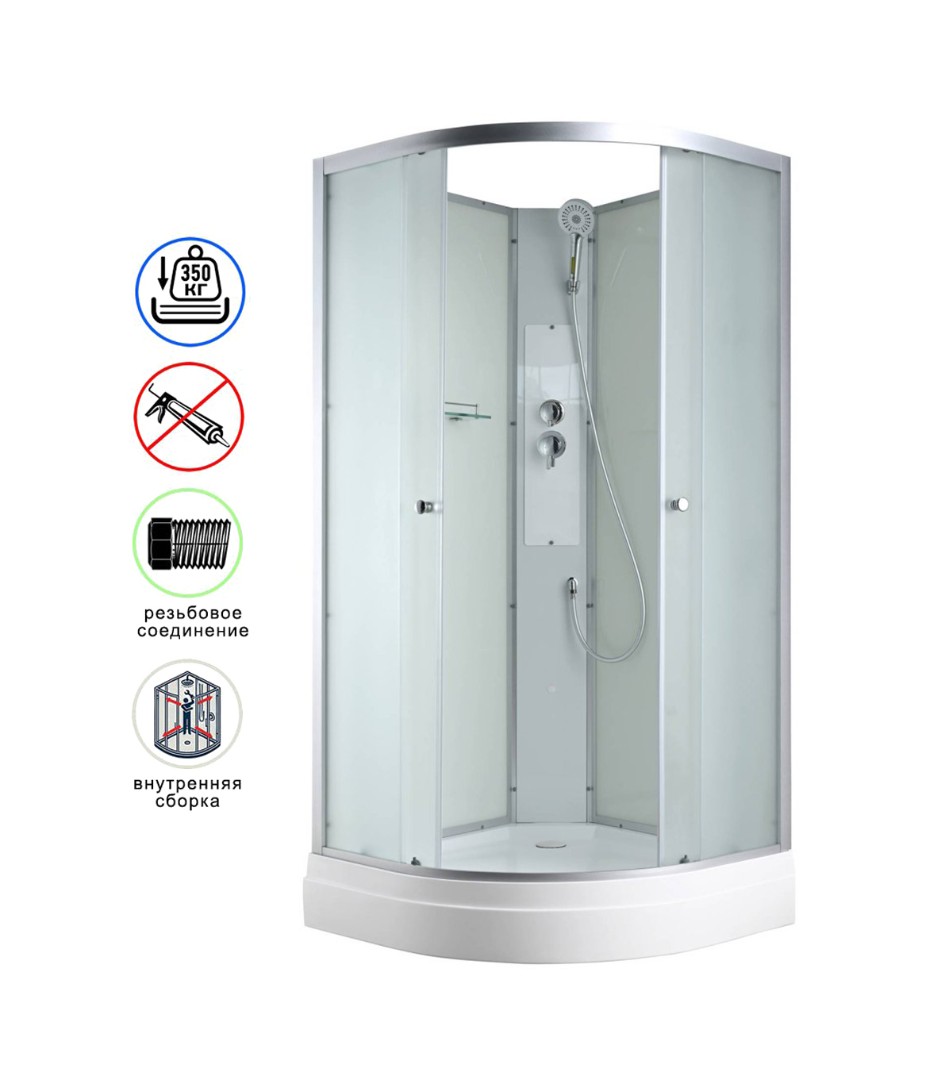 Стильная душевая кабина AvaCan C2010N сочетает в себе высокую функциональность, практичность и надёжность. При изготовлении применяется безопасное закалённое стекло толщиной 4 мм (матовое), надёжно фиксируемое алюминиевым профилем. Сборка без силикона (увеличивает срок службы), внутренняя сборка (облегчает установку и ревизию, позволяет установить душевую кабину в ограниченном пространстве), смеситель резьбовой (без хомутов), съёмный экран поддона (позволяет осуществлять ревизию сифона), цвет профиля матовый хром. Двойные металлические ролики дверей).