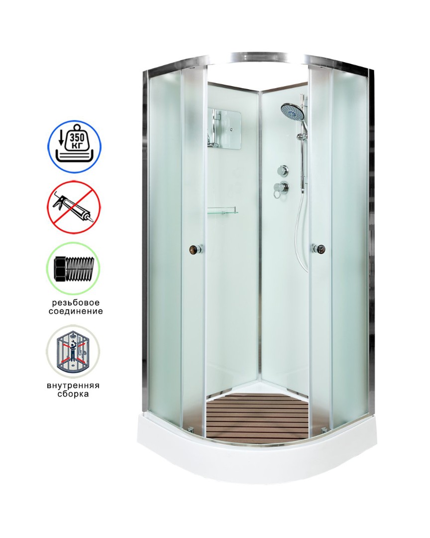 Стильная душевая кабина AvaCan D01 сочетает в себе высокую функциональность, практичность и надёжность. Для изготовления применяют безопасное закалённое стекло толщиной 4 мм, надёжно фиксируемое алюминиевым профилем. Цвет профиля хром. В комплекте сифон, крючок, полочка, зеркало, смеситель, переключатель режимов, душевой гарнитур, деревянная вставка в поддон.