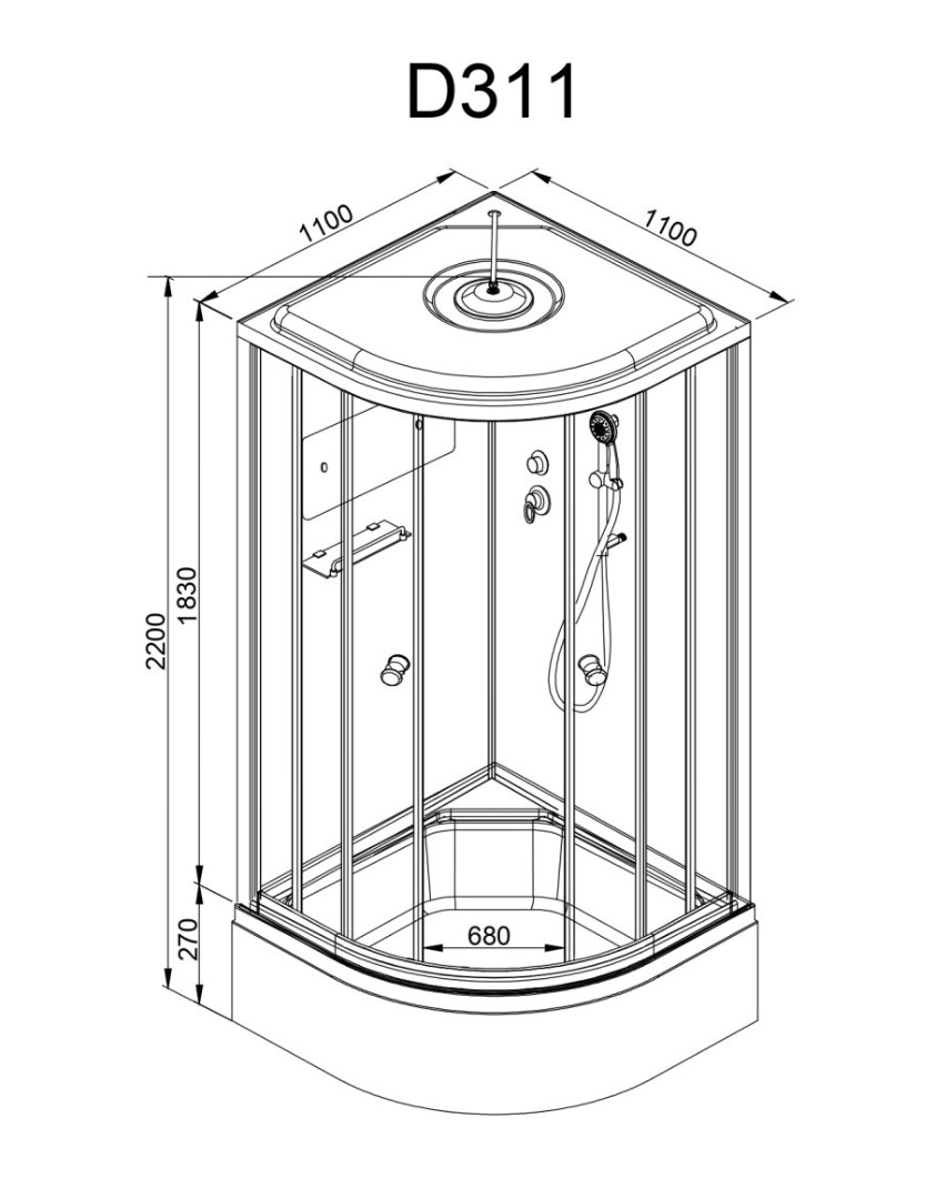 Стильная душевая кабина AvaCan D311 сочетает в себе высокую функциональность, практичность и надёжность. Для изготовления применяют безопасное закалённое стекло толщиной 4 мм, надёжно фиксируемое алюминиевым профилем. Цвет профиля хром.