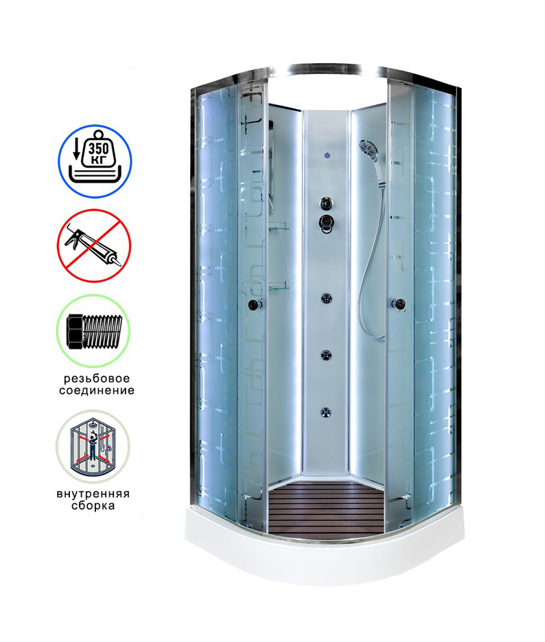 Душевая кабина AvaCan EM1510NLED+GM AVA N 100x100 без крыши с LED-подсветкой и гидромассажем