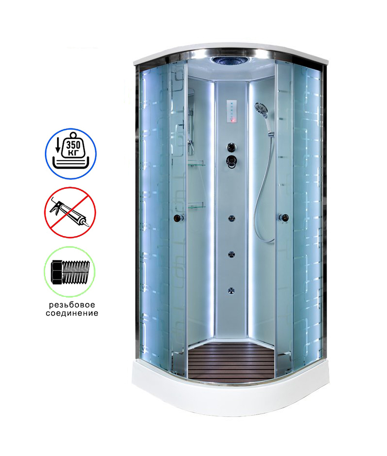 Душевая кабина AvaCan EM1580LED+GM AVA O 80x80 с LED-подсветкой и гидромассажем