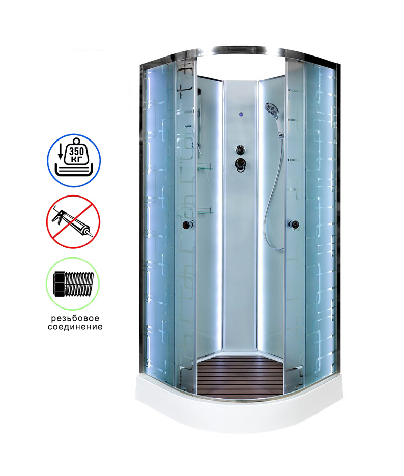 Душевая кабина AvaCan EM1580NLED AVA O 80x80 без крыши с LED-подсветкой