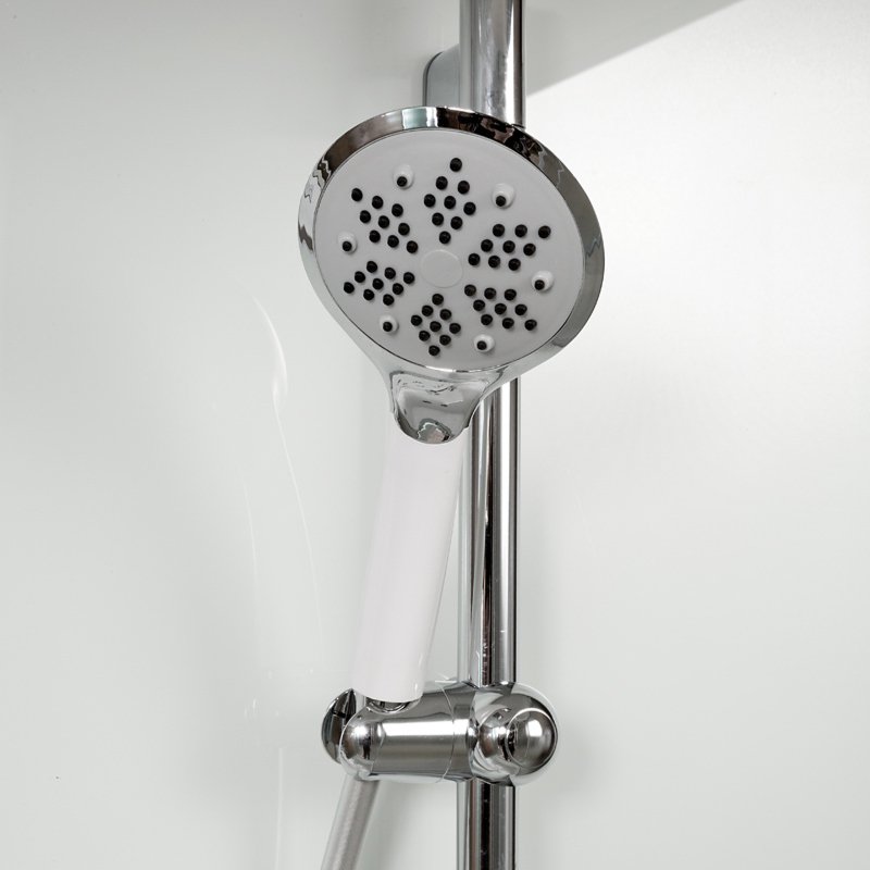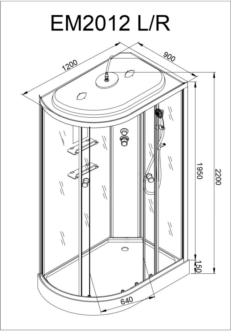 Стильная душевая кабина AvaCan EM2012 сочетает в себе высокую функциональность, практичность и надёжность. Для изготовления применяют безопасное закалённое стекло толщиной 5 мм, надёжно фиксируемое алюминиевым профилем. Цвет профиля хром.