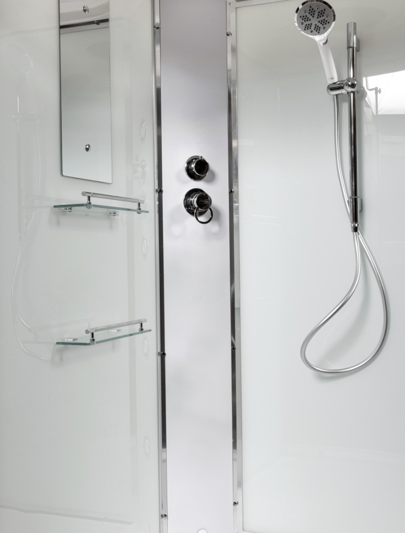 Стильная душевая кабина AvaCan EM2710 сочетает в себе высокую функциональность, практичность и надёжность. Для изготовления применяют безопасное закалённое стекло толщиной 5 мм, надёжно фиксируемое алюминиевым профилем. Цвет профиля хром.