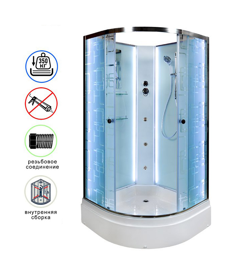Душевая кабина AvaCan EM3011NLED+GM AVA N 110x110 без крыши с LED-подсветкой и гидромассажем