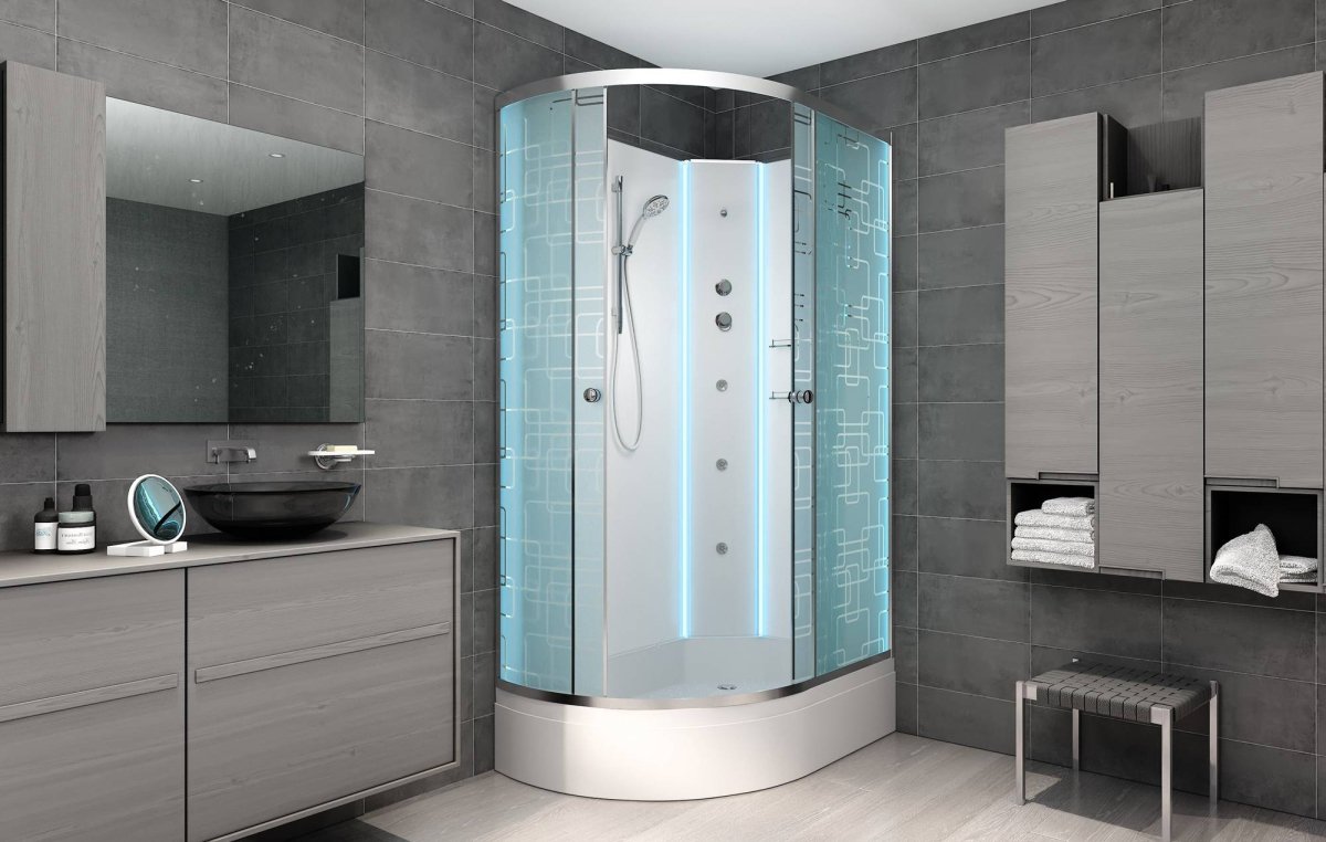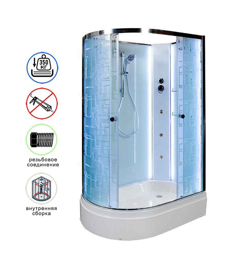Душевая кабина AvaCan EM3012RNLED+GM AVA N 120x90 без крыши с LED-подсветкой и гидромассажем