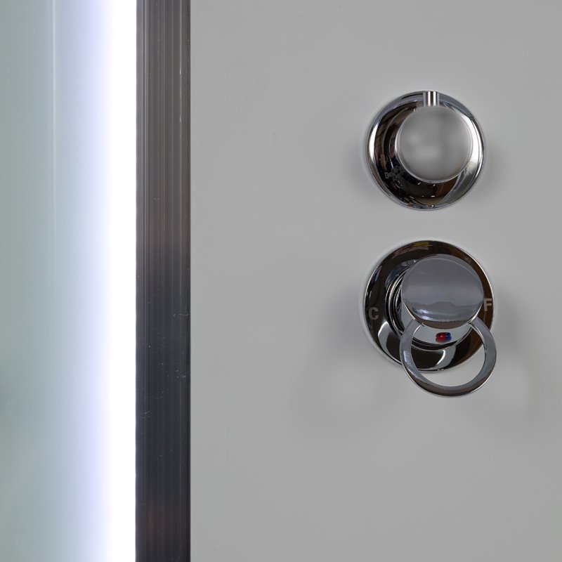 Стильная душевая кабина AvaCan EM4515 сочетает в себе высокую функциональность, практичность и надёжность. Для изготовления применяют безопасное закалённое стекло толщиной 5 мм, надёжно фиксируемое алюминиевым профилем. Цвет профиля хром.