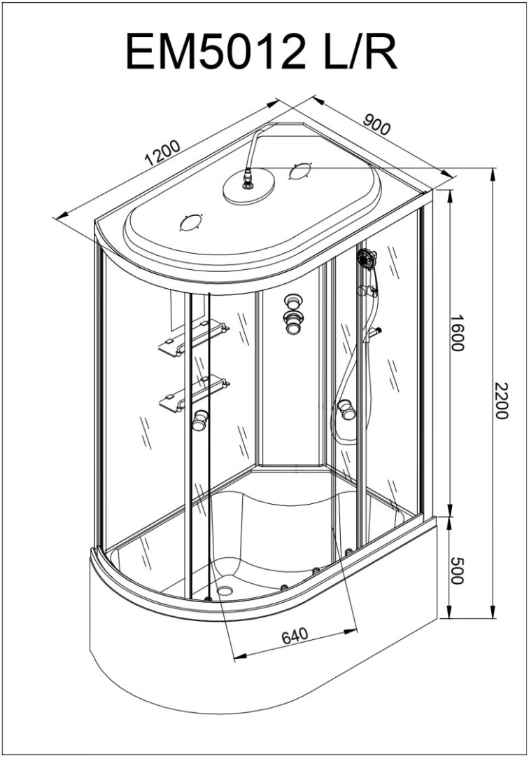Душевая кабина AvaCan EM5012LLED+GM AVA N 120x90 с LED-подсветкой и гидромассажем