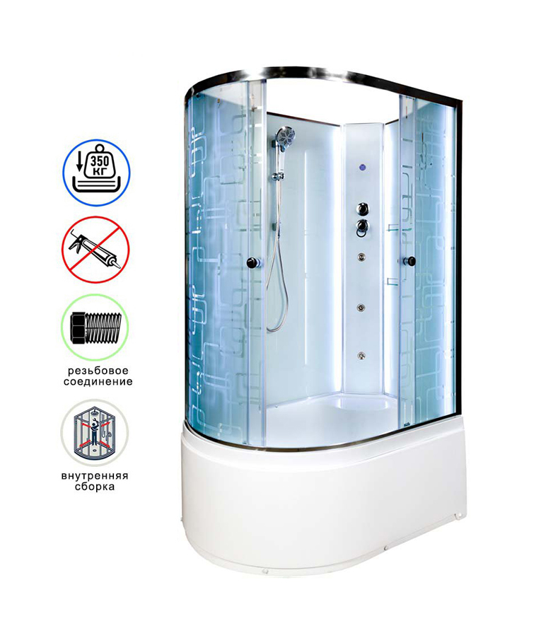 Душевая кабина AvaCan EM5012RNLED+GM AVA N 120x90 без крыши с LED-подсветкой и гидромассажем