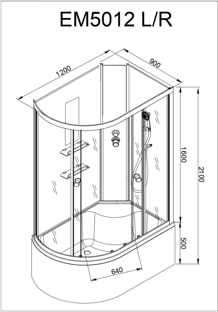 Стильная душевая кабина AvaCan EM5012 сочетает в себе высокую функциональность, практичность и надёжность. Для изготовления применяют безопасное закалённое стекло толщиной 5 мм, надёжно фиксируемое алюминиевым профилем. Цвет профиля хром.