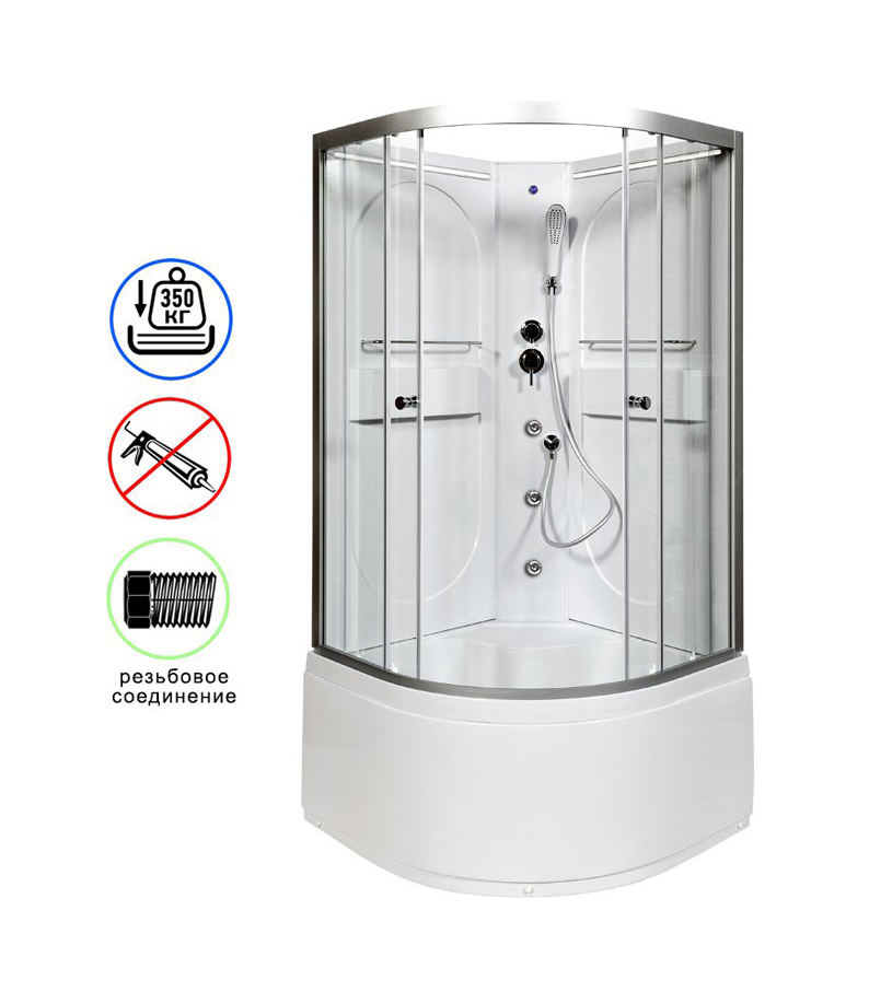 Стильная душевая кабина с внутренней сборкой AvaCan L610 сочетает в себе высокую функциональность, практичность и надёжность. Для изготовления применяют безопасное закалённое стекло толщиной 4 мм, надёжно фиксируемое алюминиевым профилем. Цвет профиля хром. В комплекте смеситель, душевой гарнитур, встроенное сидение, полочки.