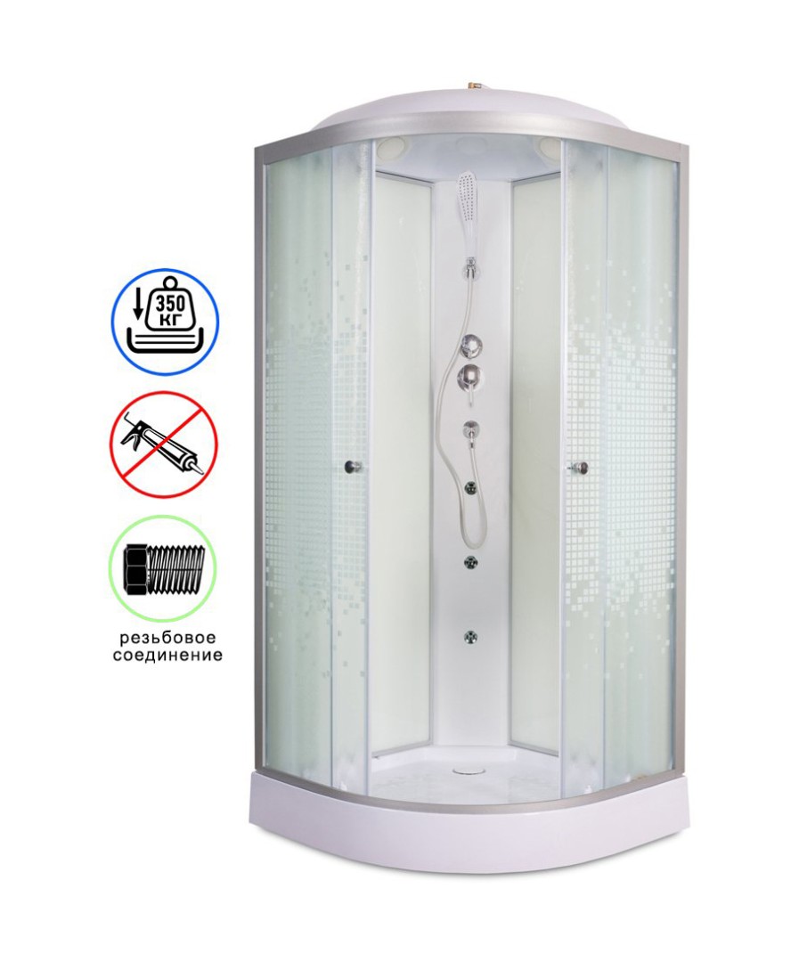 Стильная душевая кабина AvaCan L901 сочетает в себе высокую функциональность, практичность и надёжность. Для изготовления применяют безопасное закалённое стекло толщиной 4 мм, надёжно фиксируемое алюминиевым профилем. Цвет профиля хром. В комплекте душевой гарнитур, сифон, смеситель, тропический (верхний) душ, душевой гарнитур/полочка, гидромассаж спины (3 форсунки).