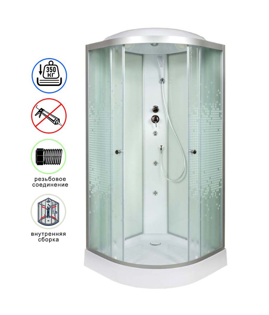 Стильная душевая кабина с внутренней сборкой AvaCan L908 сочетает в себе высокую функциональность, практичность и надёжность. Для изготовления применяют безопасное закалённое стекло толщиной 4 мм, надёжно фиксируемое алюминиевым профилем. Цвет профиля хром. В комплекте душевой гарнитур, сифон, смеситель, тропический (верхний) душ, душевой гарнитур/полочка, гидромассаж спины (3 форсунки).