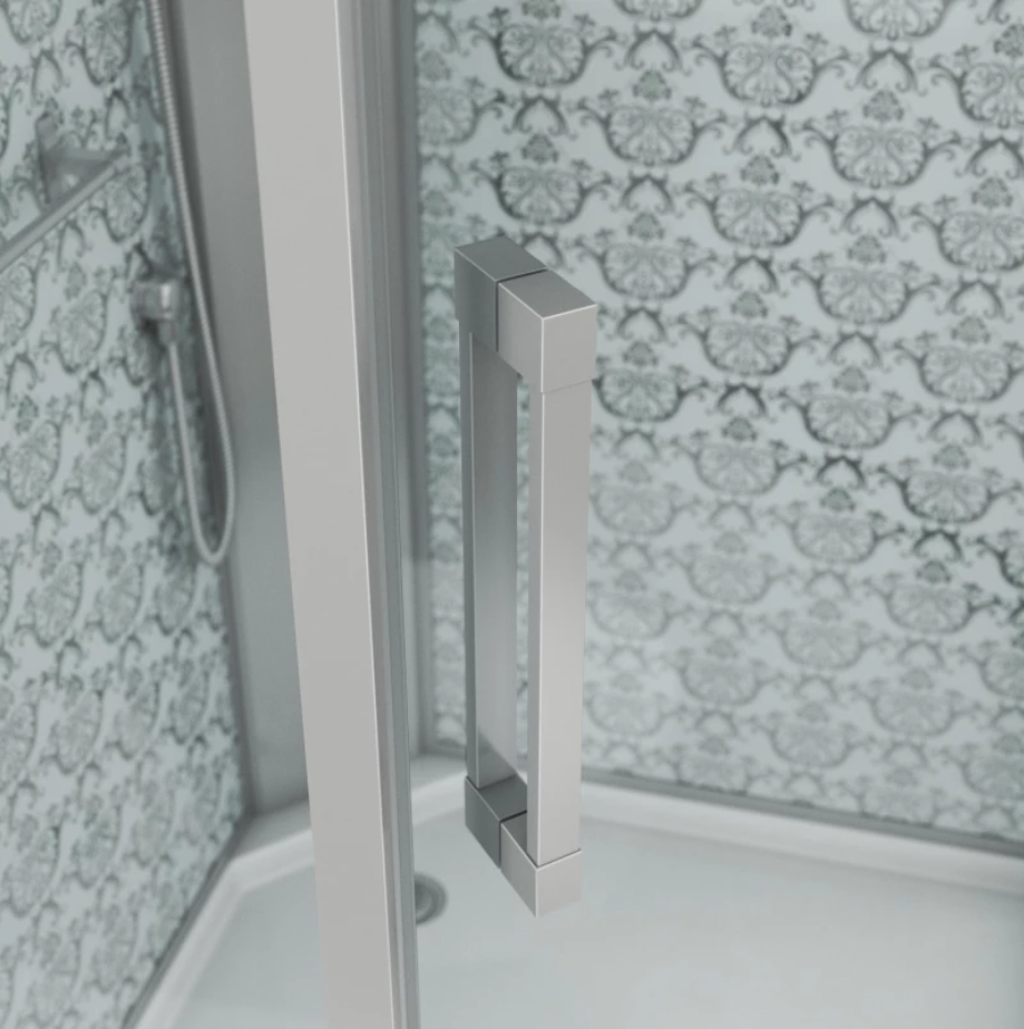Пятиугольная душевая кабина Niagara NG-7799WBK – это отличный вариант для организации просторной душевой зоны. Модель имеет габаритные размеры 90 на 90 см. В установочном углу размещается центральная стойка из пластика. Она окрашена в серебристый цвет, как и задние стенки с вензельным рисунком, профиль и дверная ручка-скоба. Заканчивается стойка лейкой верхнего душа. Его крупные капли и мощный поток как бы обволакивают пользователя, имитируя ливень в тропиках.