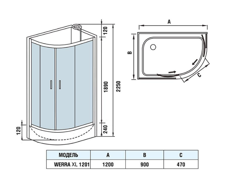 Душевая кабина без крыши Welt-Wasser WERRA XL 1201 R 120х90