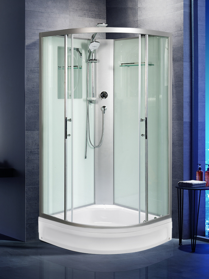 Душевая кабина Welt-Wasser Werra XL 801 - современная полукруглая угловая модель без крыши на среднем поддоне со съёмным экраном. Кабина комплектуется раздвижными дверями с двойными верхними металлическими роликами. Стёкла закалённые безопасные, передние прозрачные, задние окрашены в белый цвет. Бессиликоновая сборка.
