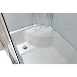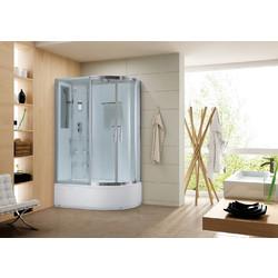 С современной душевой кабиной Black&White Galaxy G5507 L ванная комната станет удобной и функциональной. Поддон высотой 38 см имеет необычную прямоугольно-асимметричную форму. В качестве дверного полотна используется безопасное закалённое стекло толщиной 6 мм, устойчивое к перепадам температур. Стеклянная задняя стенка выполнена из материала SuperWhite, в основе которого лежит английское ударопрочное стекло Optiwhite от Pilkington. В стеклянную панель интегрировано зеркало, имеется удобная полочка для банных принадлежностей. С помощью пульта можно управлять LED-освещением, системой вентиляции, радио и Bluetooth.