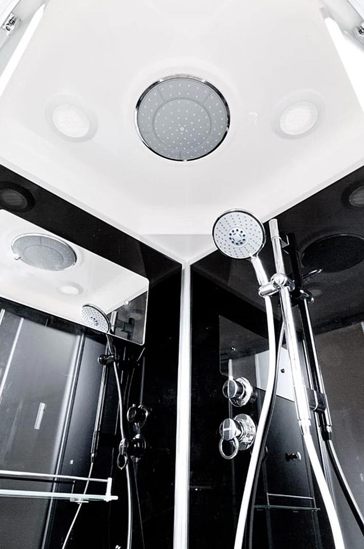 Кроме того, в крышу кабины встроена лейка «тропического» душа размером около 150 мм в диаметре со множеством форсунок. Она образует сплошной поток воды с крупными мягкими каплями.