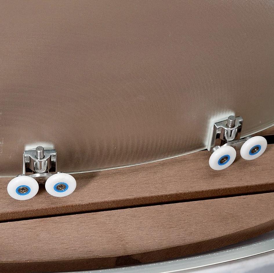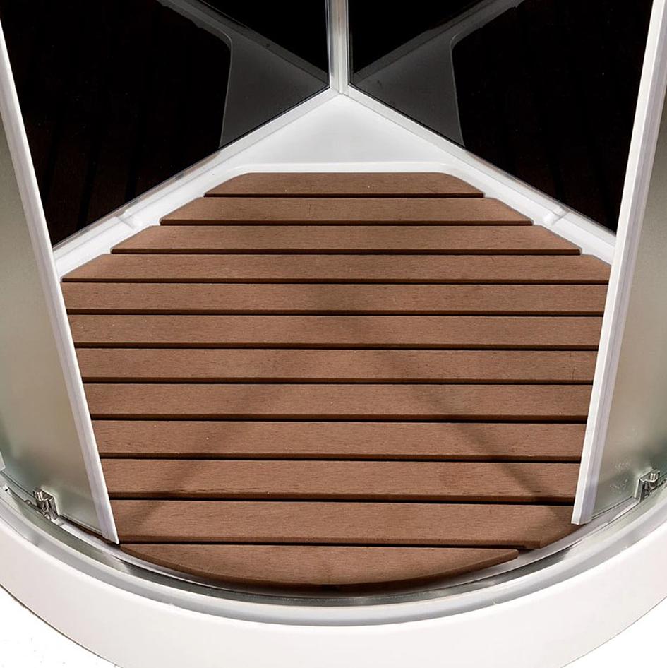 Удобство приёма водных процедур гарантирует Вам душевая кабина Deto B09S. Широкий проём образуют две стеклянные двери раздвижной конструкции. Низкий 15-миллиметровый акриловый поддон не доставит неудобства для входа и выхода. Изысканный внешний вид добавит нескользящая вставка, имитирующая дерево. Она изготовлена из полимера и имеет антибактериальные свойства.