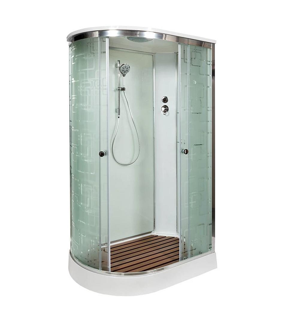 Правосторонняя асимметричная душевая кабина Deto EM1511 R должна устанавливаться в правый угол помещения ванной комнаты. Таким образом, вход и выход из кабины располагается слева.