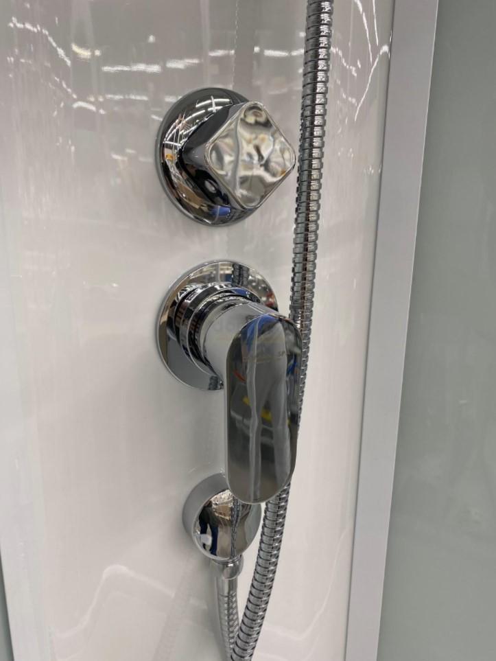 Душевая кабина Domani-Spa Delight 99 high - просторная модель с задними стенками белого цвета, прозрачными передними стёклами и белым профилем. Размер, конструкция и оптимальная комплектация душевой кабины гарантируют комфортное принятие водных процедур.