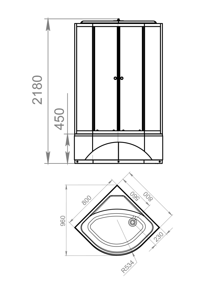 - высокий поддон (45 см) из акрила;