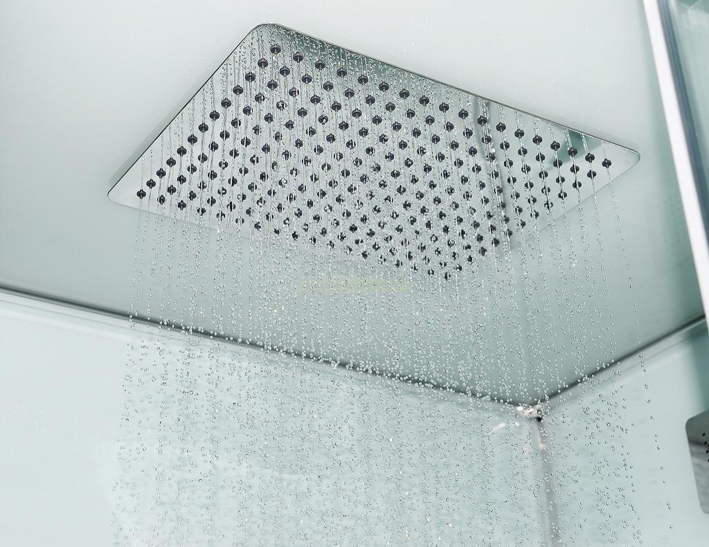 Душевая кабина компонуется поддоном, выполненным по технологии литьевой пресс-формы из армированного стекловолокном материала "Fiber Glass". Наименьшая толщина стенки по опорной стороне поддона - не менее 10 мм. Гарантированная производителем масса функциональной нагрузки на несущую поверхность поддона ограничена 1 000 кг. Максимальная температура производимого электроникой пара не превышает 60°С.