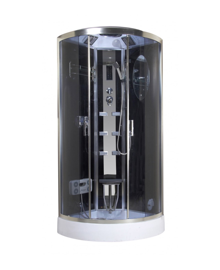 Душевая кабина Niagara NG-902-01 имеет удобную форму в виде четверти круга. Для установки кабины потребуются две свободные смежные стены и площадь 100 на 100 см.