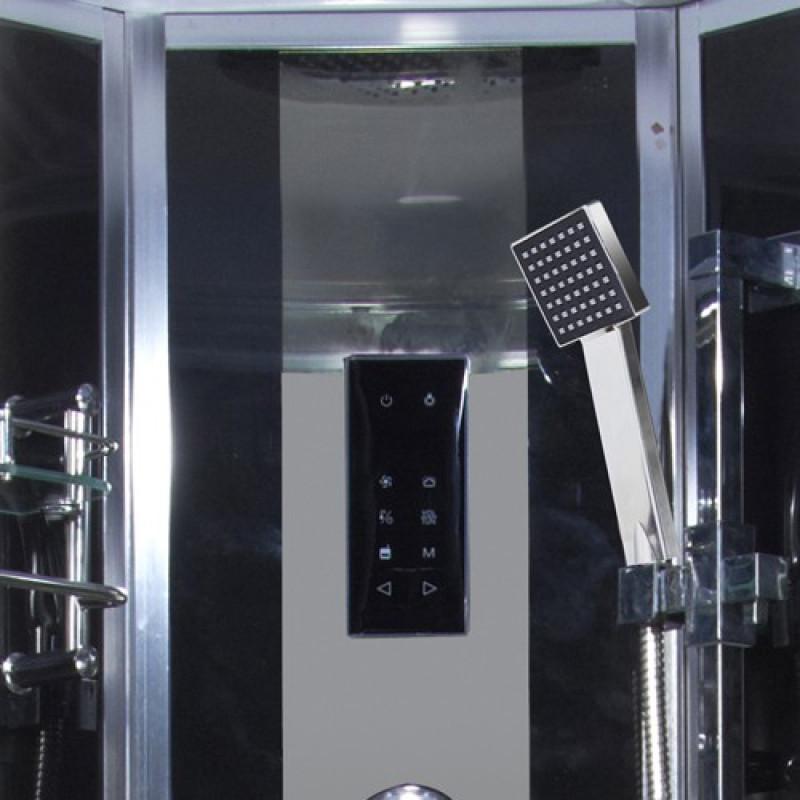 В установочном углу находится центральная стойка из закалённого стекла. На ней расположены шесть гидромассажных джеттов, смеситель, переключатель режимов и сенсорный пульт управления радио, вентиляцией и освещением. Также к центральной стойке крепится складное сиденье. За счёт своей конструкции оно не занимает место внутри кабины, когда пользователь предпочитает принимать водные процедуры стоя.