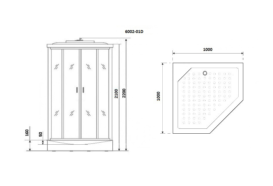 - Крыша: пластик, изогнутая, с установленным тропическим душем и вентиляцией.