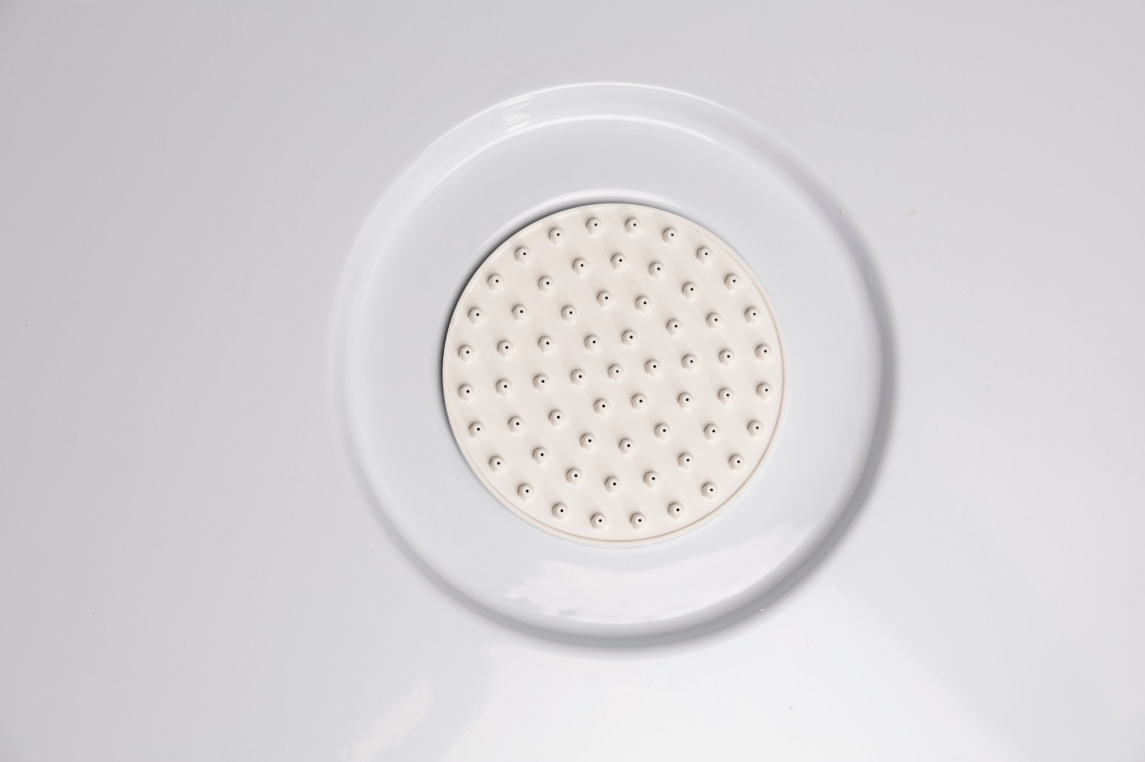 Чаша поддона закреплена на металлическом каркасе с усиленными ножками. Поддон не трещит, не скрипит, не прогибается под ногами. Высота от пола до кромки верхнего бортика 26 см, внутренняя глубина чаши 13 см, комплектуется сифоном.