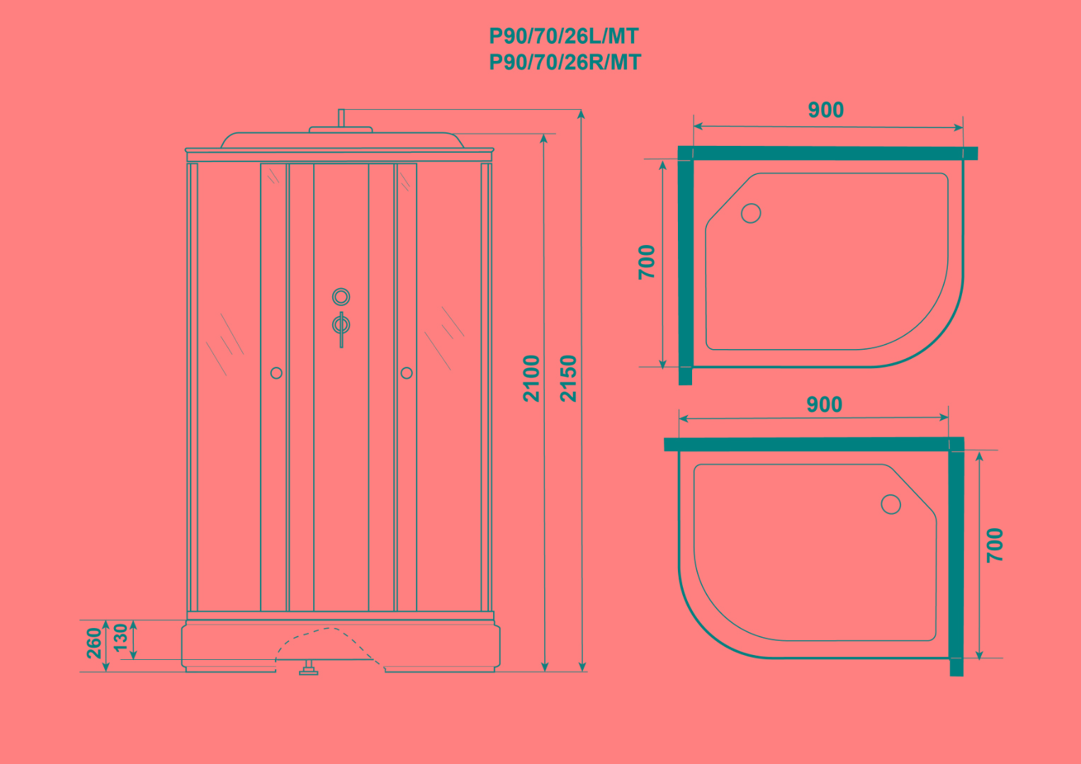 Недорогая душевая кабина Niagara P90/80/26L/MT(левая) с матовым стеклом и средним поддоном 26 см, размер кабины 90x80x215 см.