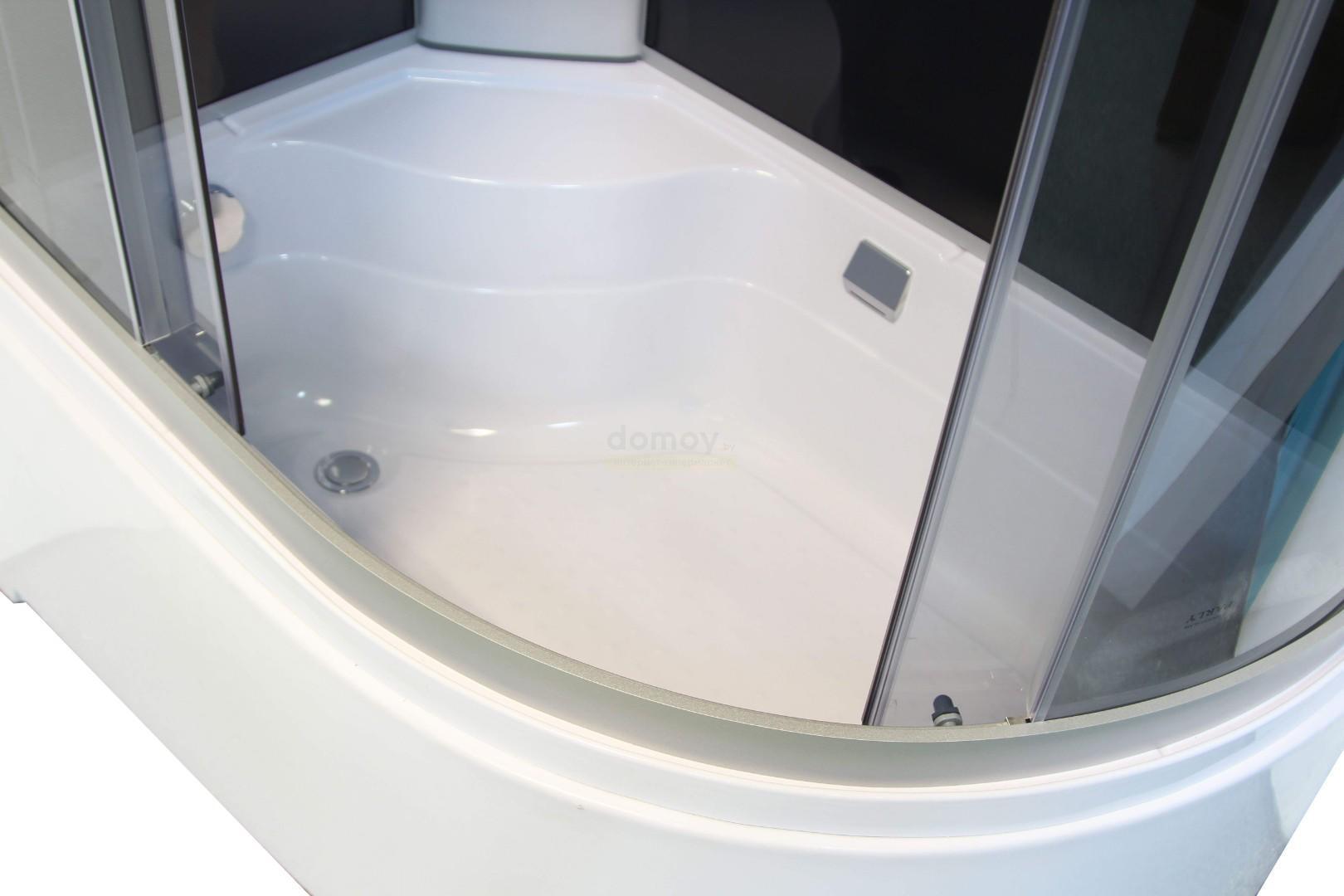 Ассиметричная душевая кабина, просторная внутри, позволяет комфортно ощущать себя даже крупному человеку, не занимает много места в ванной комнате. Устанавливается к стене, не требует сложного монтажа.