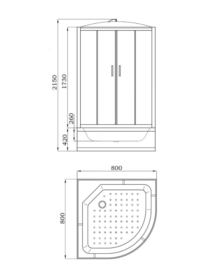 - Поддон: высокий 42 см, полукруглый, рельефное дно, литое сиденье