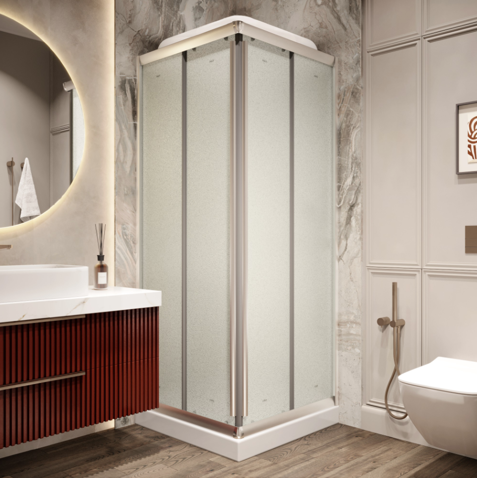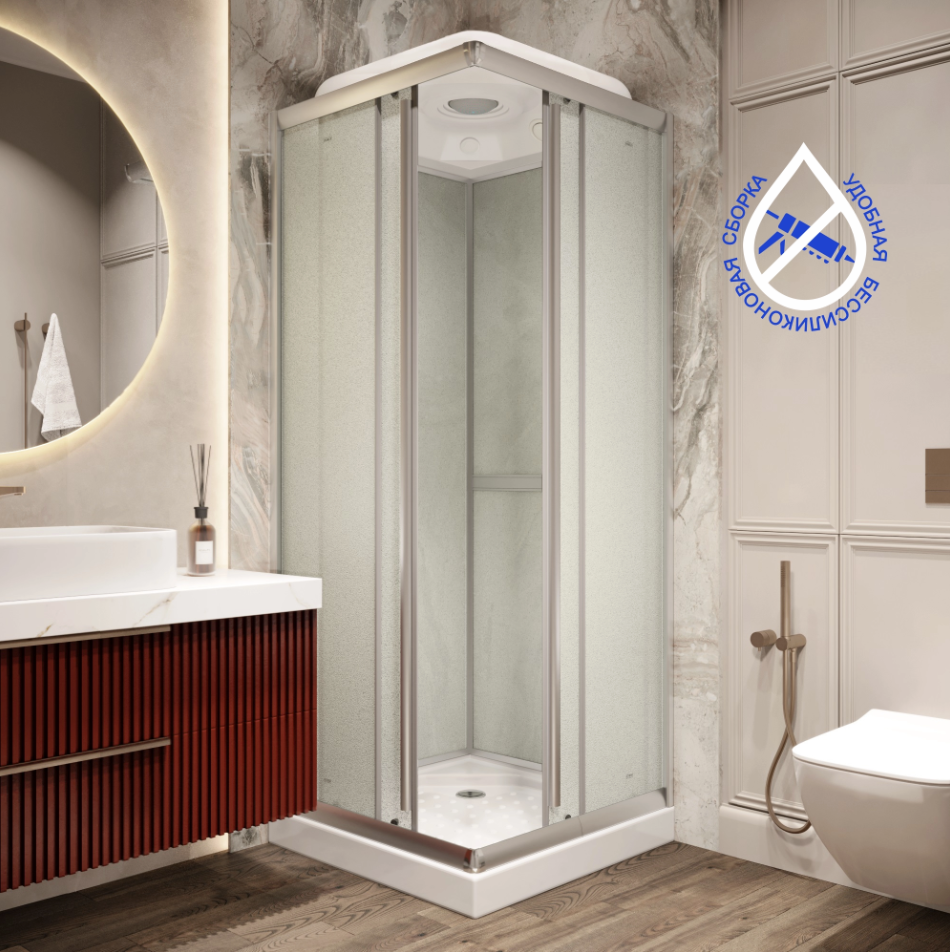 - Поддон: низкий 10 см, квадратный. Рельефное дно предупреждает падения.