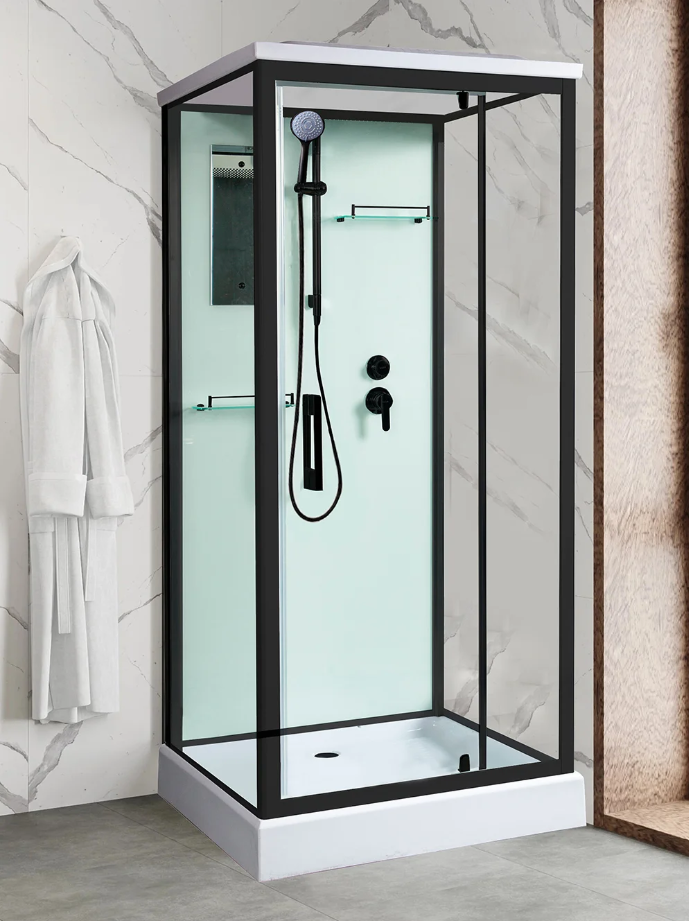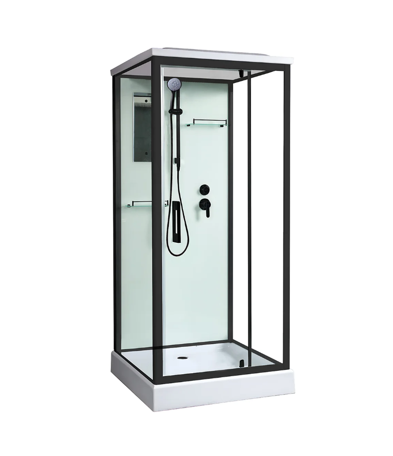 Душевая кабина River TANA 14 BL с крышей. Душевой гарнитур с лейкой EasyClean фиксируется в регулируемом держателе на штанге, верхний душ и вентиляция встроены в крышу. Кабина оснащена однорычажным смесителем, переключателем режимов, а также зеркалом и двумя стеклянными полочками. Акриловый поддон с поверхностью AntiSlip устанавливается на ножки с регулировочными винтами. В комплекте сифон click-clack с гидрозатвором. Стенки и двери кабины изготовлены из закалённого стекла, задняя стенка с аксессуарами окрашена в белый цвет. Распашная дверь устанавливается с открытием вправо или влево. Простая сборка не требует специальных навыков, подробная инструкция прилагается.