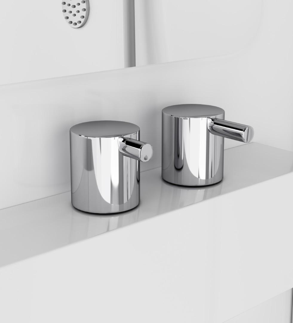 Полка со встроенным смесителем и переключателем – решение для хранения душевых принадлежностей.