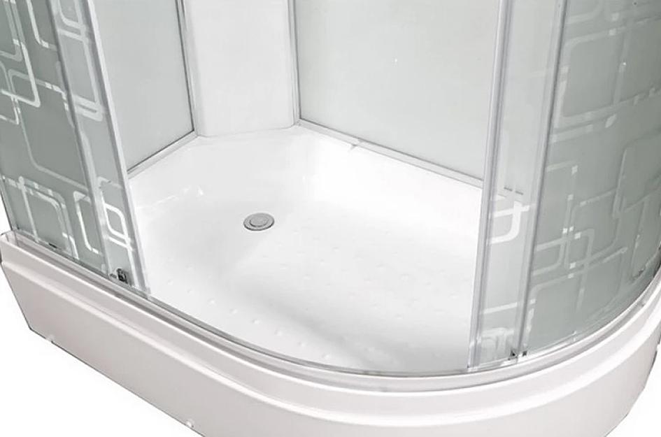 Асимметричная душевая кабина Deto ЕМ2712 L оборудована двумя раздвижными дверьми, расположенными справа. Так же, как и задние стенки кабины, они выполнены из закалённого стекла толщиной 5 мм. На дверцы нанесён рисунок пескоструйным способом, а стенки окрашены в нейтральный белый цвет. Чтобы упростить уход за душевой кабиной на стёкла нанесено антикальциевое покрытие, препятствующее накоплению грязи и налёта.