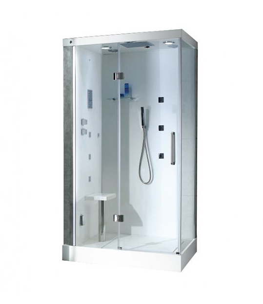Функция: пара, радио, подключение MP3, вентилятор, верхний свет, душевая лейка, форсунки, ручной душ.