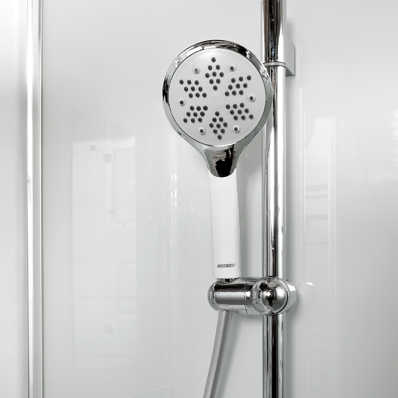 - Душевая штанга с регулировкой лейки по высоте и ручная лейка с силиконовыми форсунками.