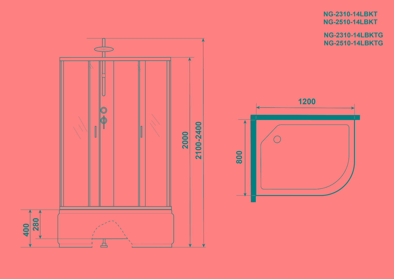 Бессиликоновая душевая кабина Niagara NG-2510-14LBKTG без крыши с гидромассажем. Полноценная гидромассажная кабина с основными функциями, подойдёт для любой ванной комнаты. Размер душевой кабины 120x80x210-240 см.