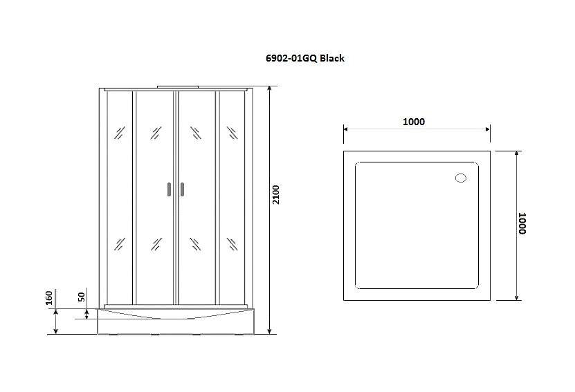 - Двери и переднее стекло: тонированные 6 мм, двери зарываются плотно с помощью магнитной ленты, вода не выплёскивается, так как установлены брызговики между дверью и неподвижной стенкой. Ручки дверей железные. Ролики стальные и надёжные.